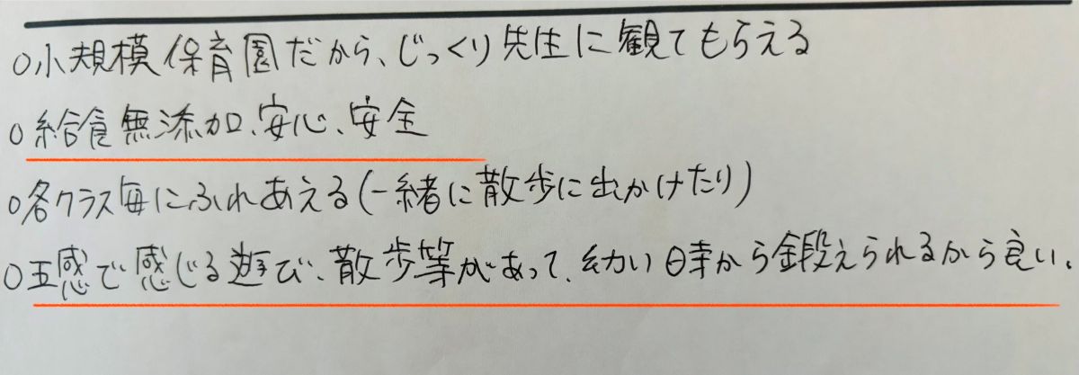 一人の保育スタッフの担当する子供の数が少ない為、手厚くお子様の発達に応じた質の高い保育を行うことが出来ます。